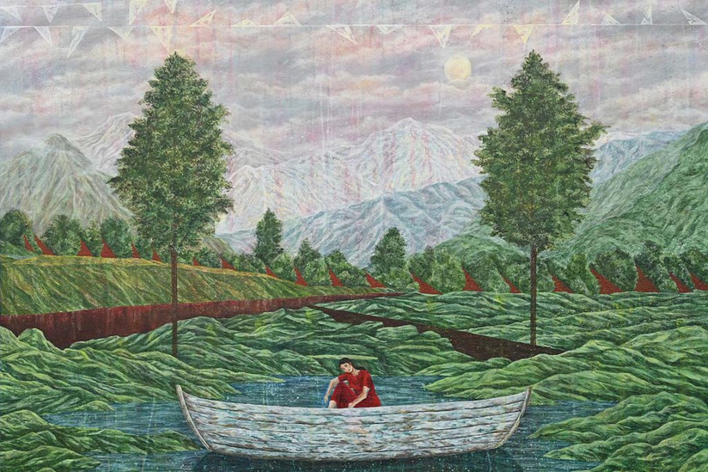 Shaped by collective histories and political upheaval, the artist situates human resilience in expansive landscapes that serve as backdrops for resistance.