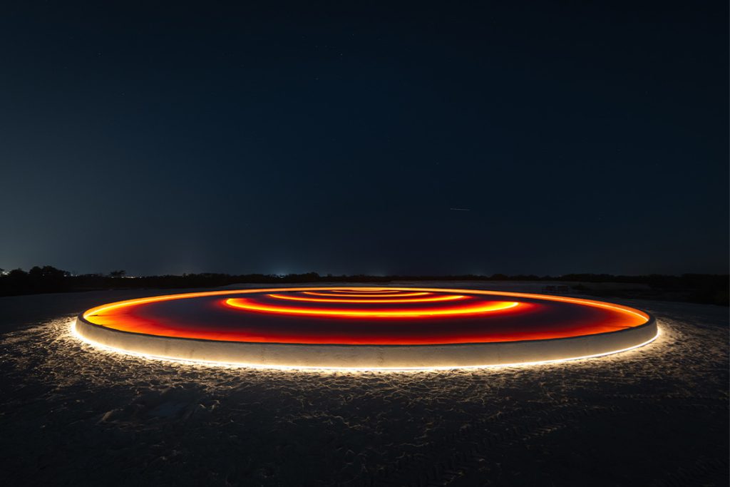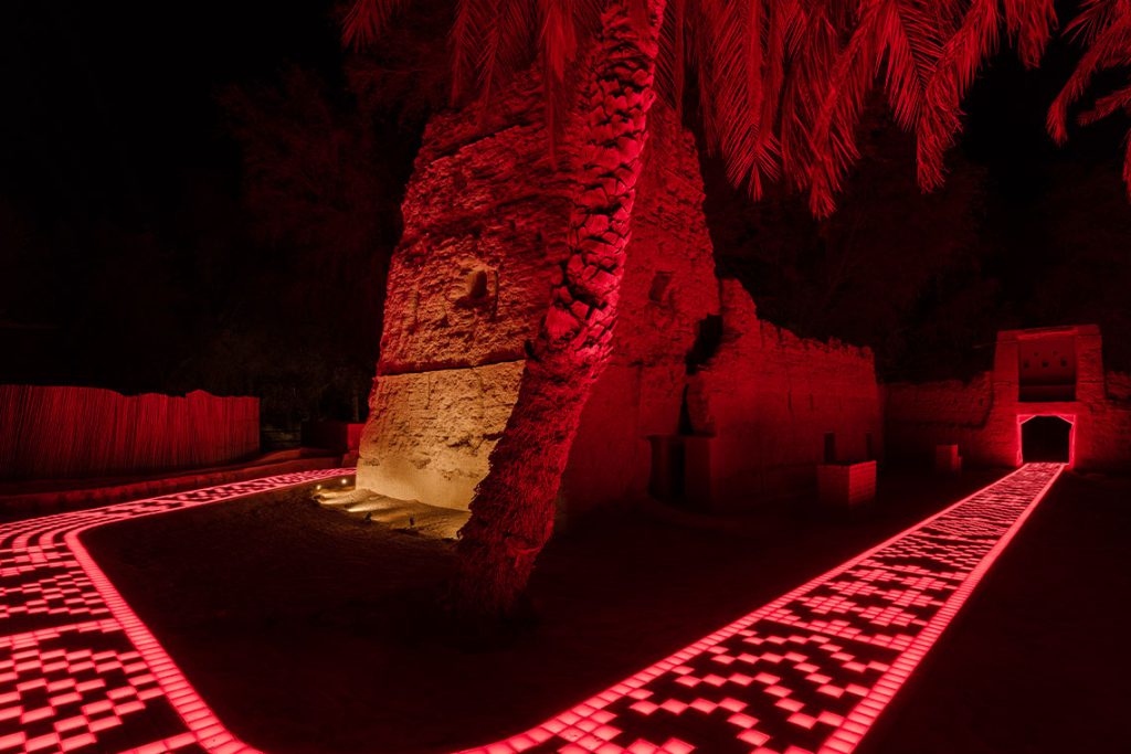 The introduction of light into the UNESCO World Heritage network opens a dialogue between contemporary artistic intervention and environments already marked by history, one that is executed with a careful sensitivity. At the second location, Jubail Island, the works feel markedly different, often demonstrating a playfulness in terms of how artists allow their materials to respond to the site. There are some dazzling monumental experimentations with interactive technology, such as DRIFT’s nightly drone show and their whispering forest of light carved into the sand, perhaps encouraged by the scale of the site and the openness of the terrain – Hori has spoken of it as a kind of a “raw canvas” on which these various different scenographies can unfold without losing the specificity of place.