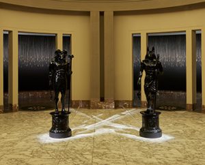 Two deities have alighted in Brussels. They stand on elaborate plinths beneath a gilded dome….