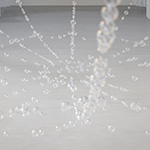 Image: Mona Hatoum. Web. 2025. Clear glass spheres and metal wire. Dimensions variable. Installation view at Elleboogkerk, Amersfoort, The Netherlands, 2025. Photography by Robin Meyer © Mona Hatoum. Image courtesy of the artist and Kunsthal KAdE