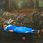His work generates a constant dialogue with the great masters of the past. Rubens, Caravaggio, Velázquez, but also Degas, Manet, Courbet, and Hopper all inform his practice. On a residency at the Casa de Velázquez in Madrid, the artist meditated at length in front of the paintings by the great masters on display at the Prado. Echoes of these influences emerge, inviting visitors to hone their observational skills in search of references from near and far. His work, at the crossroads of documentary and pictorial fable, builds bridges between past and present. Eager to place his work in the continuity of a renewed art history, he affirms the relevance of painting today, albeit in an era saturated with images.