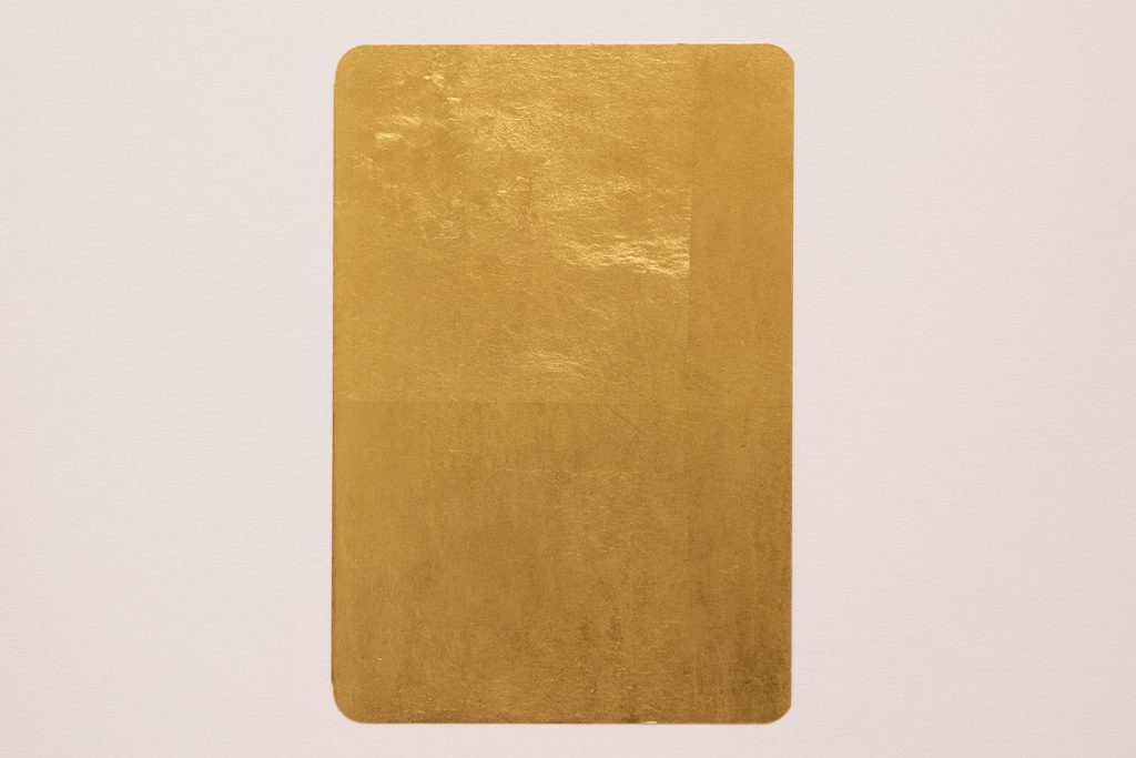 These muddled childhood memories are further encapsulated by Golden Memories (2015–18). On first view, visitors see a framed piece of shimmering gold leaf, seemingly hopeful and bright. In reality, the reflection of the gold obscures a childhood photograph of the artist. Visitors are instantly faced with the irony and cynicism of the piece, with the mirrored surface also inviting them to project their own ‘Golden Memories’ onto the framed leaf. Both abstract and figurative, the piece cleverly reminds us how easily memories are obscured by the passage of time.