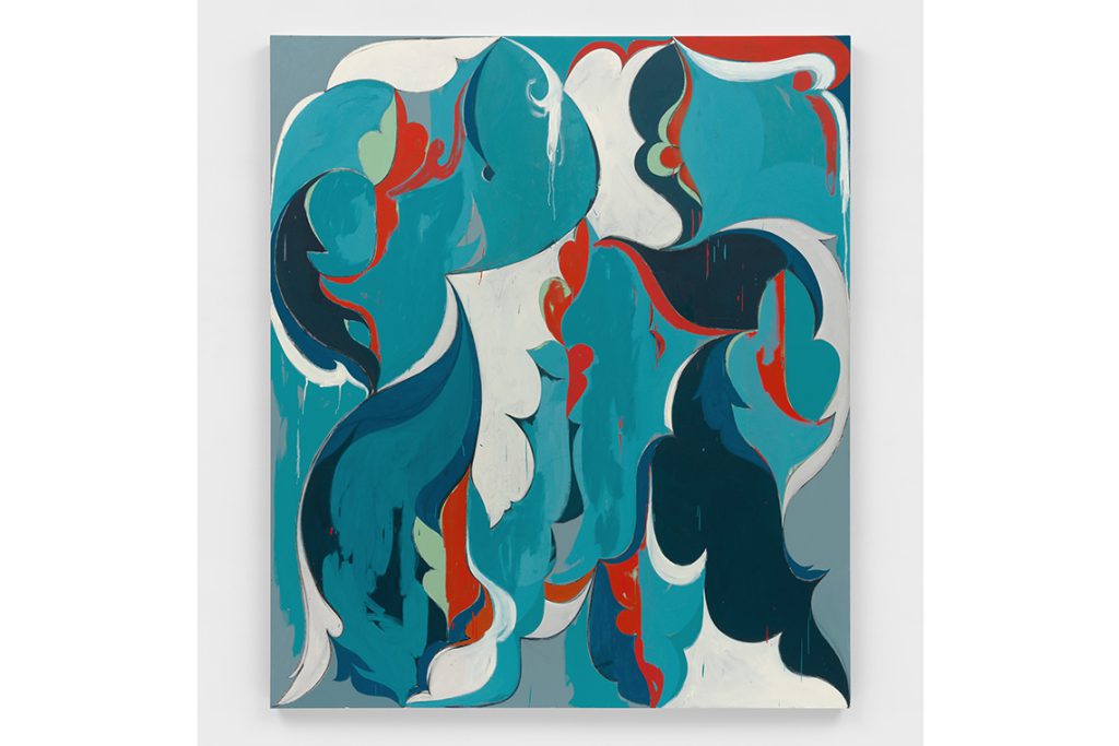 There is a gentle negotiation in Kamrooz Aram’s paintings. A fierce agreement on form and depth, the back-and-forth of his work spills over onto the viewer’s positioning in front of ornately deviant abstractions. A sway up close is essential in grasping the New York-based artist’s tactile details, as well as taking a step back to plunge into his caressing vortexes of vibrant colouration.