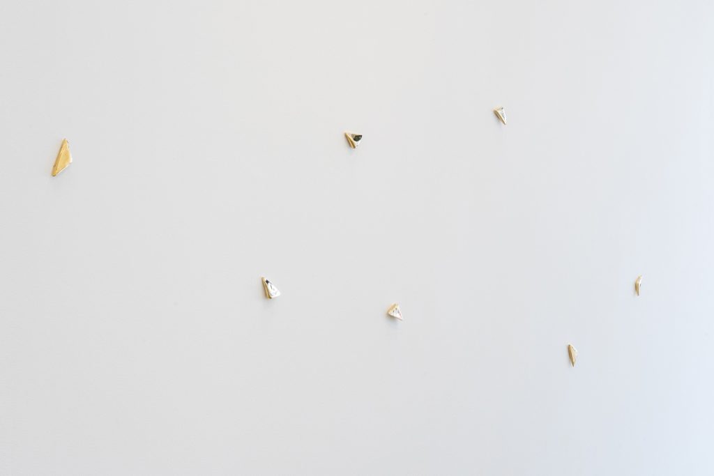 Interspersed between these maps are three installations titled Hmayk (Charms, Curses and Spells) (2025). The pieces nod to the belief that Armenians would place spells on their treasure in order to protect it. Over the years, accounts emerged that treasure hunters successfully located Armenian gold only for it to instantly turn into bees or ladybugs. Avakian’s talismans hold a series of historical spells, including protection against thieves and property; one talisman holds a spell “to fold a thief’s path seven times into itself”, while another instructs “to turn evil tongues into wool”. A traditional technique involving the etching of spells onto rice paper before being encased in a sturdy material has been used by the artist. In this case, the talismans are wrapped in glittering gold brass. These shimmering charms cleverly evoke both the themes of ancestral treasure and protection. We are reminded that, despite laying claim to Armenian wealth, there are often greater – and perhaps mythical – ethical guidelines at play.