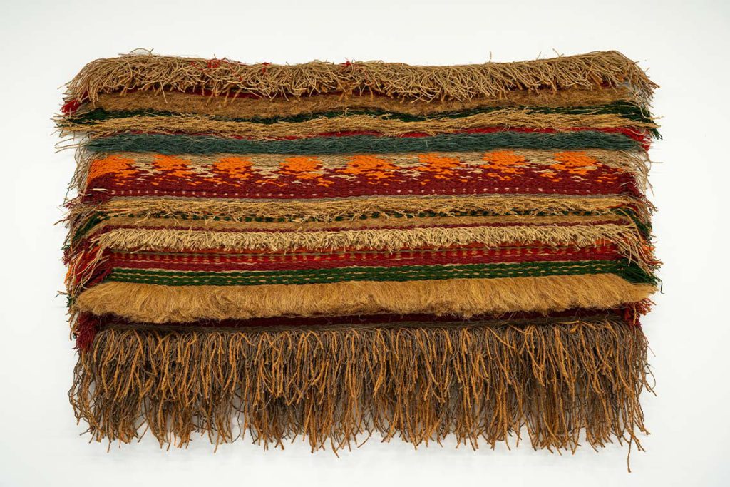 In this series, which proposes an aerial view of the oasis using materials gathered from it, the reappropriation is more aesthetic than anything else. Everything is made by hand, including the dyes and the weaving. Through the texture, the colours, I wanted to highlight the dryness of the oasis. I was seeking to translate the landscape of Gabès through this work, to show the paradoxical nature of it. The oasis appears as a type of paradise, but if one goes near the chemical factory, it is more like an apocalyptic hellscape.