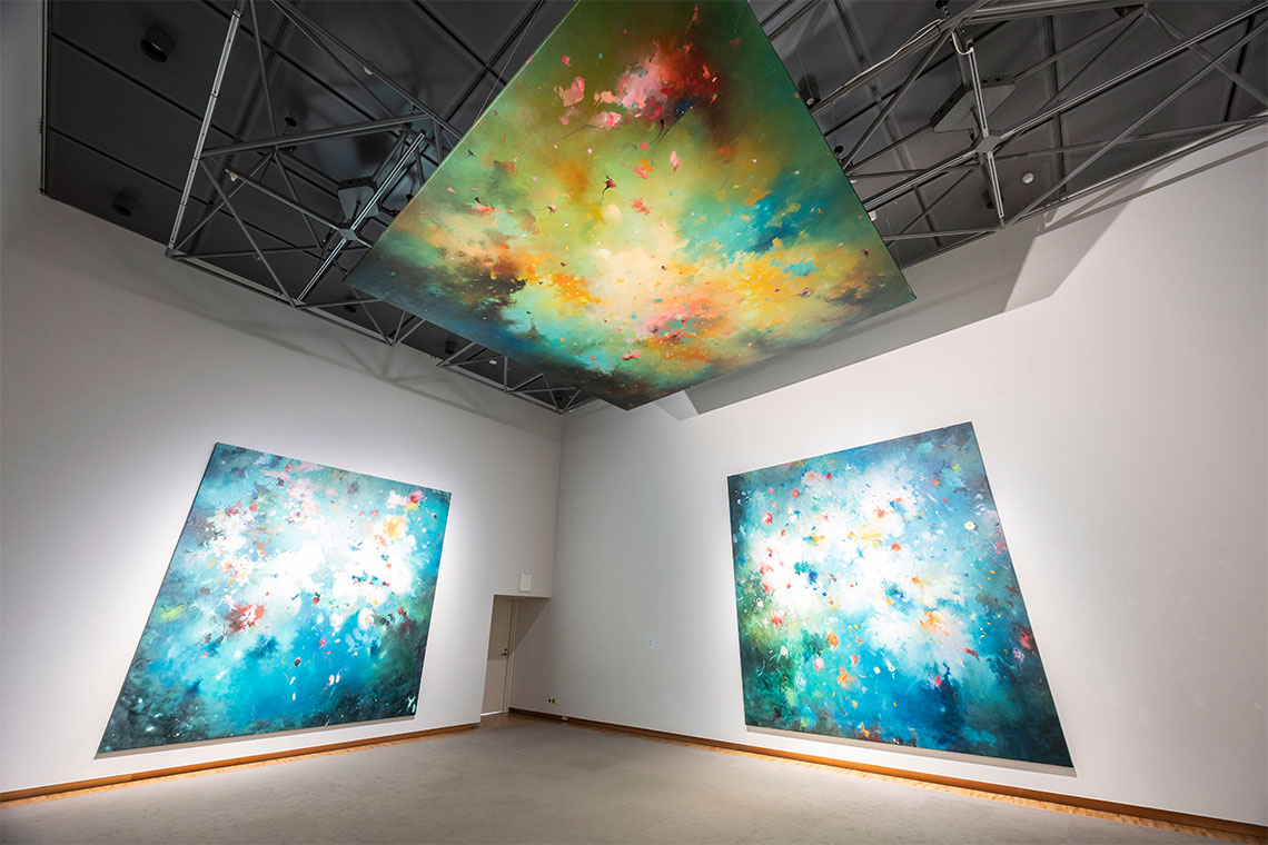 Coinciding with the opening, the prefecture saw protests regarding the Aichi-Israel Matching Program, linking local companies with tech start-ups in Israel. Although not associated formally, several artists signed an open letter urging the participating artists to demand an end to the ties: “[The triennale] must not be used to artwash the systems of corporate greed and militarization that exploit and oppress our communities and lands – from Nagoya, to the Ryukyu Islands (Okinawa), to Gaza and beyond.” Bassim Al Shaker’s work, New Birth (2025) in the Aichi Arts Center seems to encapsulate the feeling of the triennale. Paintings hang from the walls, and one from the ceiling, surrounding viewers with swirls of colour. From the surface they seem light in tone, but they express the artist’s recollection of bombs detonating in the air during the 2003 US invasion of Iraq. Yet, the paintings are not about death but living in the moments after the explosions, resilient with gratitude for life.