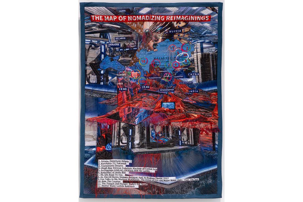 Presented in the other major temporary exhibition space isI Understand Everything, the first retrospective of the seminal artist, Almagul Menlibayeva. Born in Almaty, she has enjoyed a career extending across almost four decades and spanning myriad media, from textile, painting and printmaking to performance, photography, video and, most recently, experimentation with AI. Curated by Gridthiya Gaweewong of the Jim Thompson Art Center in Bangkok – a choice that articulates the museum’s affirmedly global perspective – the show is full of treasures, not least The Map of Nomadizing Reimaginings #3, (2025), one of Menlibayeva’s superb ‘cyber-textiles’ in which she treats new technologies as an extension of traditional felt making.