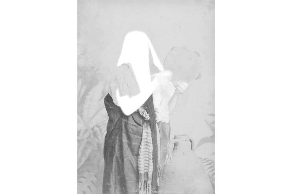 After realising that nothing online could teach me more than my mother’s story had, I scraped images from The Ken and Jenny Jacobson Orientalist Photography Collection at the Getty Museum and tested them across different computer vision models. In Salaf (2020), I erased the figures in these images through an AI computer vision technique that is usually used to detect and perceive subjects in images. I inverted how it works and created an absent data set to talk about the absence of data, and then trained an AI model on it. That’s how I generated Ancestral Seeds (2025). It has a more fluid, morphing structure in which you see the figures take on the stereotypical poses that were fashionable in colonial photography. I want to show how colonial patterns can be relearned by AI, and that, as much as it is overhyped nowadays, it is delicate and still makes mistakes.