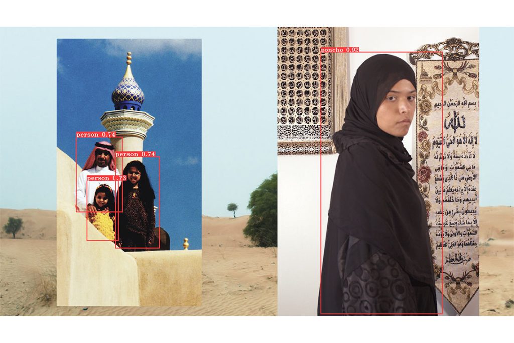 The politics of representation have really impacted me as an Arab living in the USA. I came here soon after 9/11, when there was a lot of fear around saying you are Muslim or Arab. Working on this archive for Salaf and Ancestral Seeds felt as if I were exposing myself, although ultimately it was really healing for me to push through. So many people have come up to me saying how they relate to the work. I reference Edward Said’s concept of the ‘white’ and the ‘other’ all the time. We always fall within this ‘other’ and algorithms perpetuate that notion. So it’s not just about me, it’s about the marginalisation of many identities, memories and histories. My film Ana Min Wein? (Where Am I From?) (2022) speaks about this. I wanted to document the process of conversing with the machine and saying, “Where am I from?” And it’s messing up. It doesn’t know. It says, “Are you from here? Are you from here?”. Sometimes I hear people laugh in the audience, and that brings me joy to know that they understand, as so many of us can relate to that experience.
