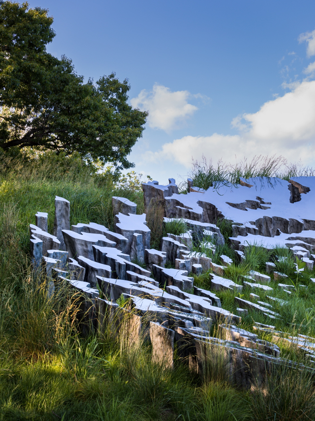 Sarah Sze. Fallen Sky. 2021. Storm King Art Center, Mountainville, NY. Photography by Nick Knight. O Sarah Sze. Image courtesy of Sarah Sze Studio