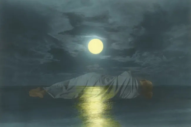 Self-portrait with the Moonlight, 2021 Hand Coloured Gelatin Silver Print 75 x 116 cm Edition of 5