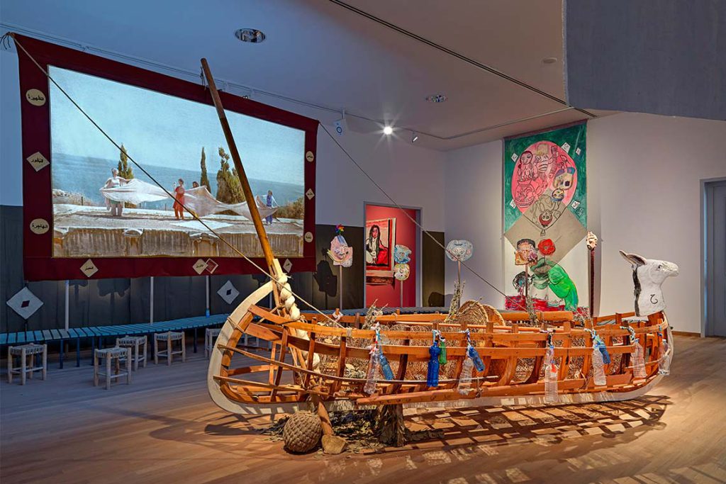 A land as big as her skin is the latest solo exhibition by Mounira Al Solh, which is currently on view at Bonnefanten in the Netherlands. Displayed at Arnolfini will be Al Solh’s multimedia installation from the Lebanese pavilion at the 2024 Venice Biennale, A Dance with her Myth, made up of masks, works on paper, paintings, film work and the life-size skeleton of a rowing boat. Also on view will are two recent works entitled Elissa’s Room and Europea’s Bedroom, as the exhibition invites viewers to discover the mythology of the Middle East through the story of Europa, a Phoenician princess and Greek god Zeus, before bringing them back to the present day as the fates of both Europa and Queen Elissa are looked at from a modern-day perspective.