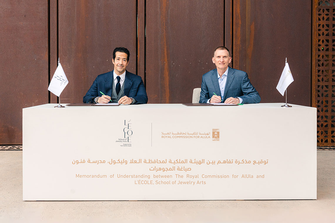 The Royal Commission for AlUla has signed a Memorandum of Understanding with L’ÉCOLE School of Jewelry Arts to collaborate on jewellery education, training and cultural exchange. The agreement focuses on developing skills in the fields of jewellery craftsmanship, art history and gemmology through structured programmes delivered in AlUla.